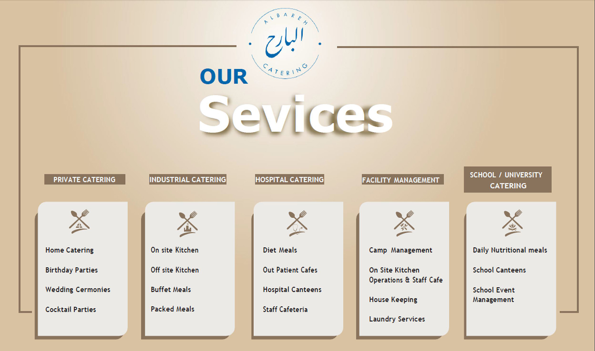 Albareh Catering Company envisions a culinary experience that transcends the ordinary, where every dish tells a story of passion, creativity, and excellence. Guided by our commitment to innovation and authenticity, we strive to delight the senses, exceed expectations, and create unforgettable moments for our clients and guests. With a dedication to culinary artistry, sustainability, and unparalleled service, we aim to be the premier choice for discerning individuals and organizations seeking a taste of perfection